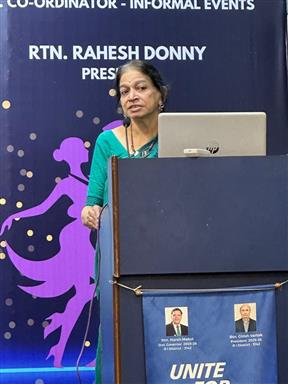 Speaker Rtn Usha Mani from R C of Thane Hiranandani Legends deliver. . .